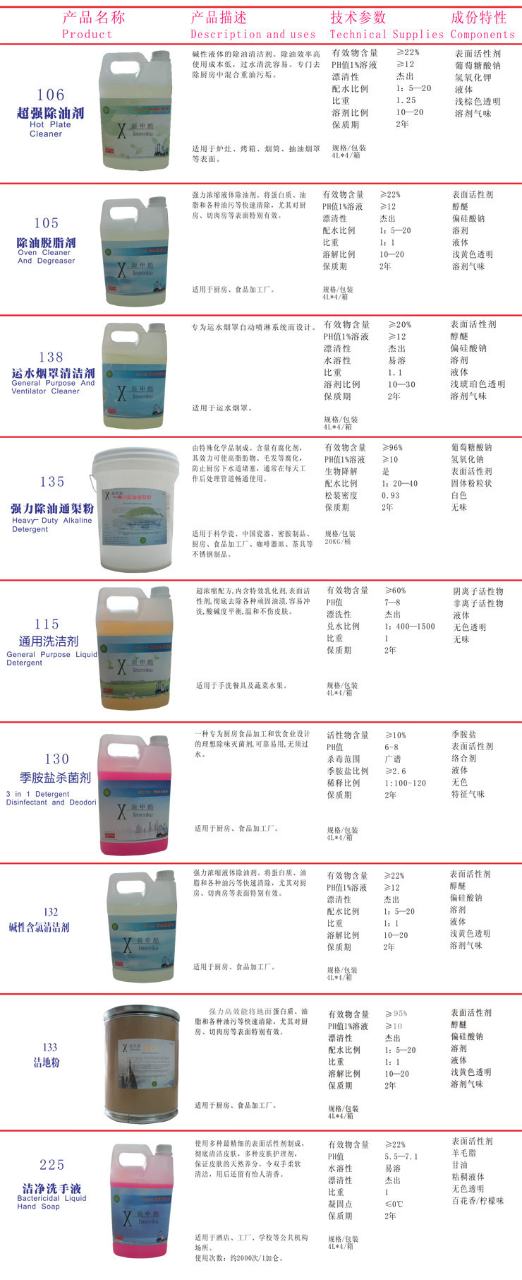 | WE105 除油脫脂劑 | WE138 運(yùn)水煙罩清潔劑 | WE135 強(qiáng)力除油通渠粉 |